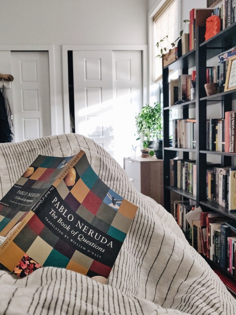 I devoured Pablo Neruda’s The Book of Questions in a day. I was dumbstruck by the magical thinking, the childlike wonder of each microscopic poem.